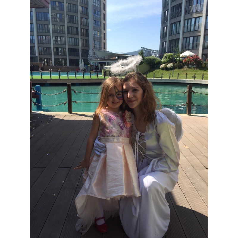 Melek kostumlu animatör